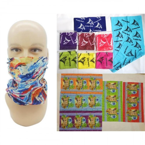 High quality seamless neck tube free shipping to most states. Free set up to custom print 1 color/full color logo or image/pattern for you. Front and back can be printed same or different as request. People can wear it in different ways including shape to hide mouth & nose for some protection. Popular for all seasons outdoor activities. Material is 100% polyester with elasticity. Individually bagged, 10 pcs a pack. Free to assort & mix colors as request. It's multi-functional, also be used as hood, headband, coif, kerchief, head cloth, wristband, towel, neckerchief, hair clasp, hair band, hair rope, etc. You can create new ways to use the it as wish.