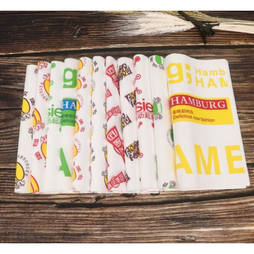 This wrapping paper is waterproof and oilproof,which is very suitable for fried food. Not only paper,but also the ink,we all adopt environmental friendly material,which is no harm to our body. The size and the print all can be customized as your request.